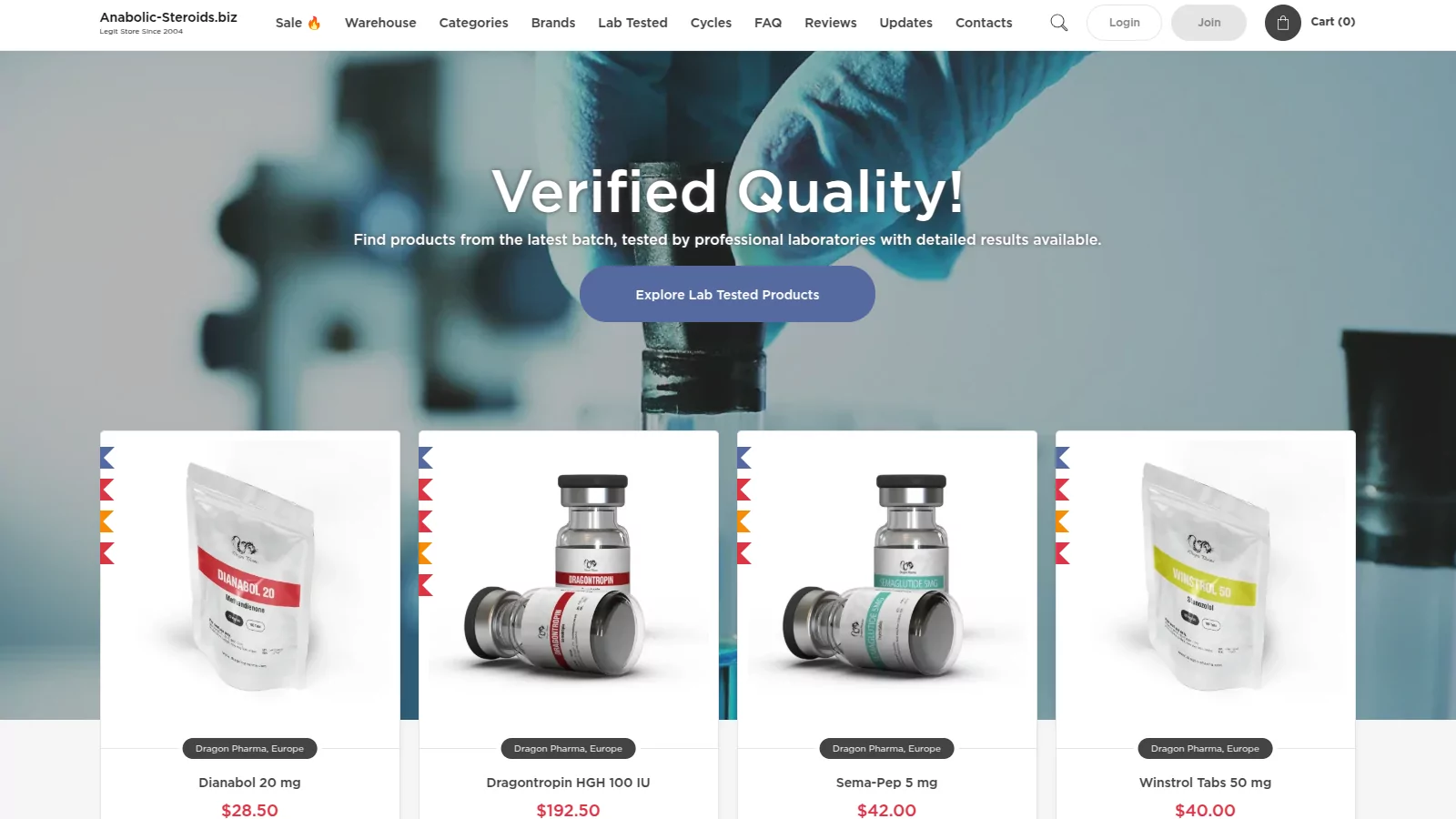 | Lab-Tested Products | A dedicated category where products (e.g., Dragon Pharma items) have published, third-party lab reports verifying purity and potency. |